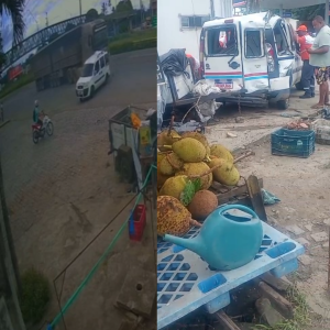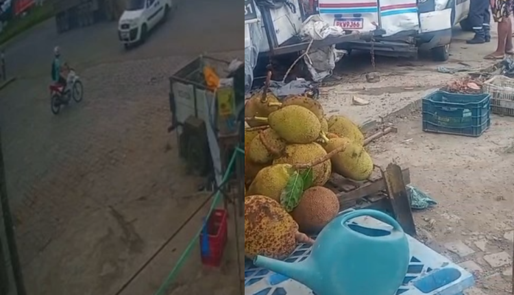Com o impacto, o motorista da Doblò perdeu o controle da direção e o carro saiu da pista, colidindo contra uma carretinha que estava estacionada ao lado de uma barraca de frutas nas imediações do posto de combustíveis.