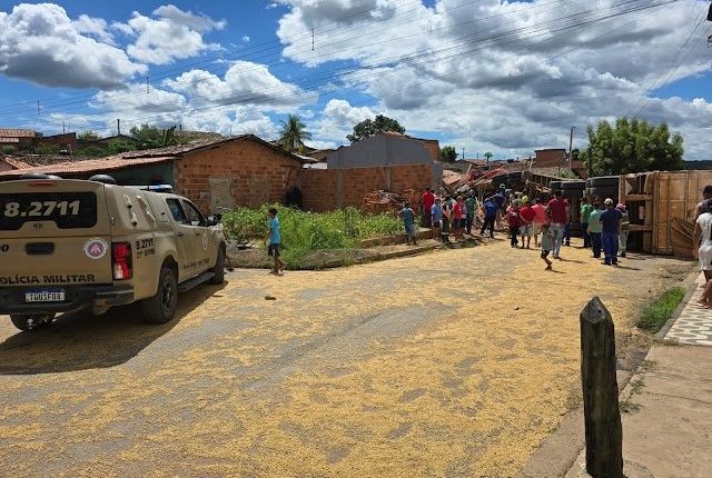 Carreta com carga de soja perde freios, atinge casas e deixa feridos em cidade no oeste baiano