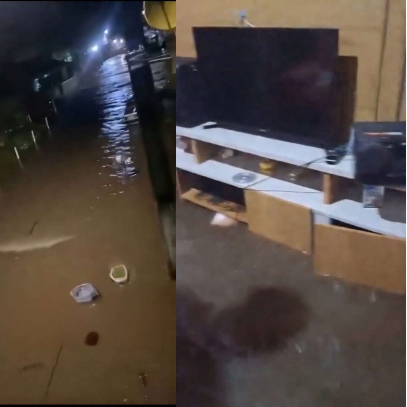 Com a chuva forte durante a madrugada, o nível da água subiu rapidamente e invadiu diversas residências, causando perda de móveis, eletrodomésticos e outros bens. Imagens enviadas por moradores mostram ruas completamente alagadas e casas tomadas pela água.