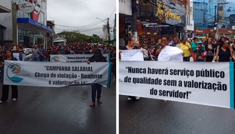Servidores municipais de SAJ voltam às ruas para protestar por melhorias salariais