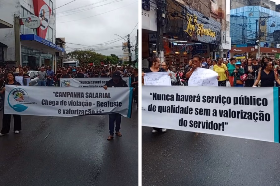 A manifestação teve início na Rua da Câmara, seguiu pelas Quatro Esquinas, passou pela Praça Padre Mateus e se dirige ao prédio da Prefeitura. Durante o ato, os servidores utilizam cartazes, faixas e palavras de ordem para cobrar avanço nas negociações com a gestão municipal.
