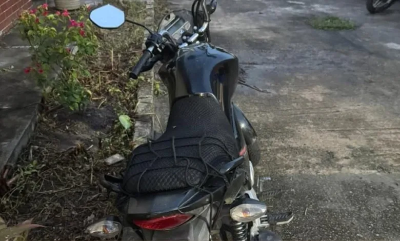 Ao inspecionar a motocicleta deixada para trás, os policiais constataram irregularidades graves: o veículo apresentava a ausência total de numeração no chassi e no motor. A supressão dessas identificações é uma prática criminosa comum, utilizada para dificultar o rastreamento de veículos roubados, furtados ou clonados.