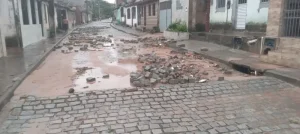 “Pode observar que o calçamento restante aqui está solto, tá vendo? Em muitas pedras a força da água levou. A Prefeitura precisa tomar uma ação de imediato para não terminar de carregar tudo e a situação não piorar”, cobrou o vereador Bel.