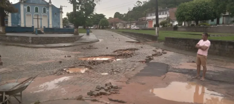 O parlamentar também alertou para o risco de novos desmoronamentos na via caso o poder público municipal não intervenha rapidamente. O calçamento que resistiu à primeira enxurrada encontra-se instável.