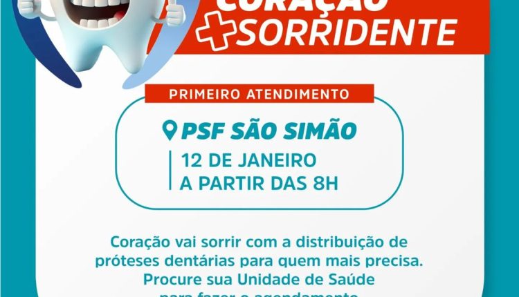 Dando largada ao Projeto Coração Mais Sorridente, amanhã, 12.01, os atendimentos serão realizados no PSF do SÃO SIMÃO, apenas para os usuários cadastrados nessa Unidade de Saúde.